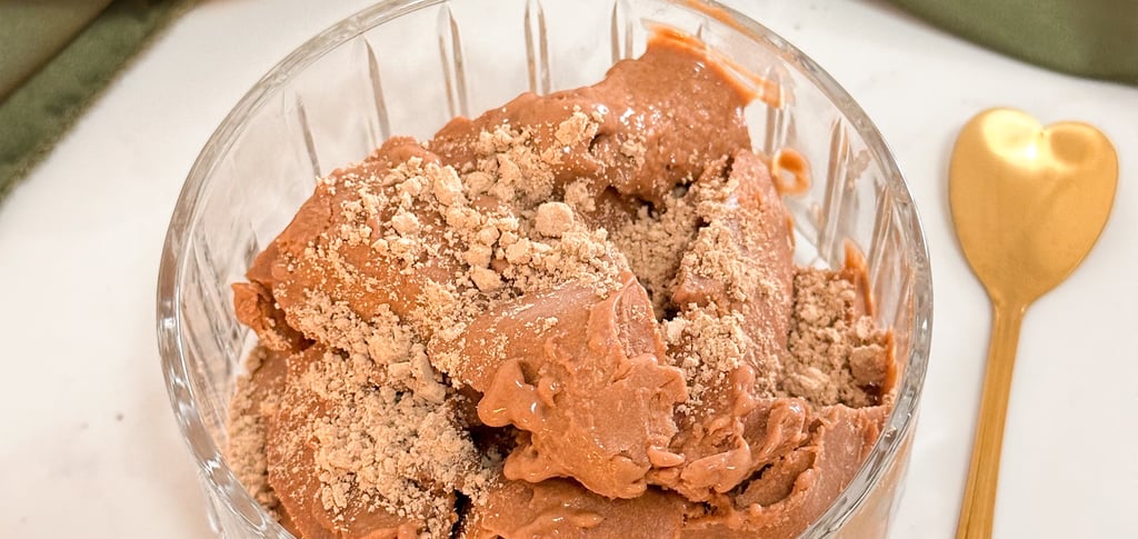 Bater todos os ingredientes até ficar homogêneo. Freezer por 3 horas. Finalize polvilhando whey por cima.